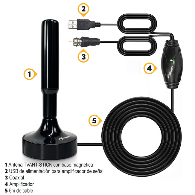 Proveedor:Master ElectronicosAntena HD Omnidireccional para TV Digital | Uso Interior/Exterior, Base Imantada | TVANT-STICK 📺 Mejora tu recepción de canales de TV digital con una antena compacta y fácil de instalar.La Antena HD Omnidireccional TVANT-STICK está diseñada para usarse en interiores o exteriores y...