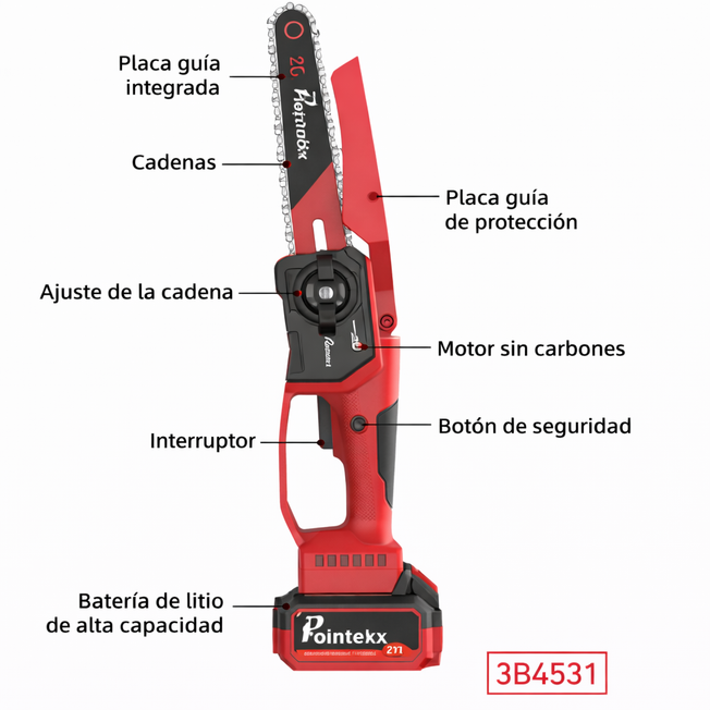 Proveedor:Master ElectronicosMotosierra Eléctrica Inalámbrica 21V 6 Pulgadas | 3B4531 Descripción del producto La Motosierra Eléctrica Brushless 21V modelo 3B4531 está diseñada para ofrecer cortes precisos, potencia constante y máxima comodidad en trabajos de poda, jardinería y corte de madera...