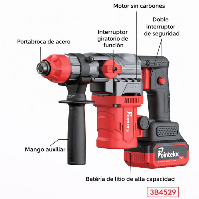 Proveedor:Master ElectronicosRotomartillo Eléctrico 21V 28 mm para Concreto | 3B4529 Descripción del producto El Martillo de Litio Brushless 21V de 28 mm modelo 3B4529 está diseñado para trabajos exigentes de perforación y demolición ligera, ofreciendo alto rendimiento, potencia constante y...