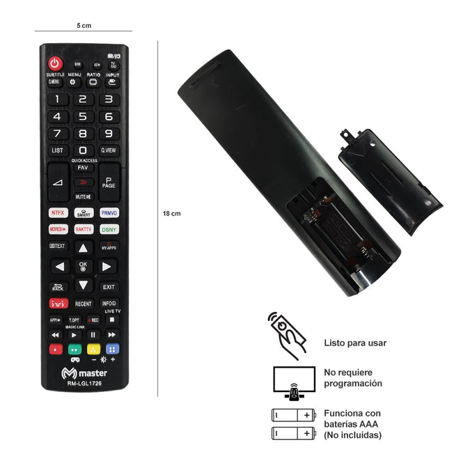 Proveedor:Master ElectronicosControl Remoto Compatible con TV LG | RM-LGL1726