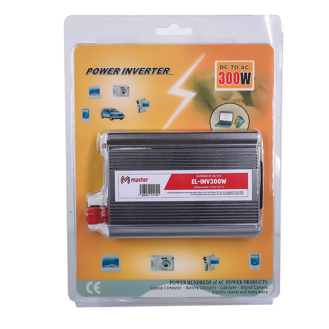 Proveedor:MASTERInversor de voltaje, 300 Watts | EL-INV300W Permite conectar aparatos domésticos en el auto. Cuenta con capacidad de 300 Watts. 2 modos de conexión al auto. Puerto USB de carga de dispositivos. Conecta tus equipos electrónicos directamente en...