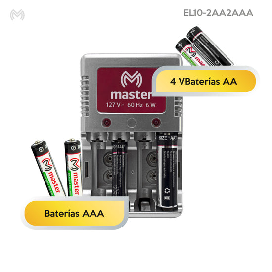 - Incluye 2 baterías “AA” de 3000 mah y 2 baterías “AAA” de 1200 mah