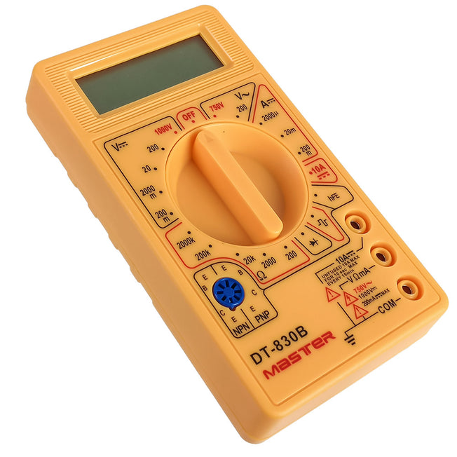 Proveedor:Master ElectronicosMultímetro Digital Portátil de Alta Precisión – Medición de Voltaje, Corriente y Resistencia El Multímetro Digital Básico DT830B es una herramienta esencial para cualquier entusiasta de la electrónica, profesional o aficionado. Diseñado para ofrecer precisión y facilidad de uso, este multímetro es perfecto...
