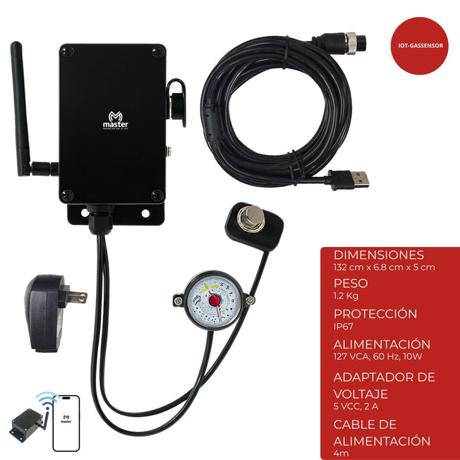 Proveedor:Master ElectronicosSensor / Medidor Inteligente de Gas para Tanque Estacionario WiFi IP67 con Válvula Electrónica | IOT-GASSENSORV El IOT-GASSENSORV es un sensor / medidor inteligente de gas para tanque estacionario que ofrece la solución más completa en monitoreo y seguridad.Conéctalo vía WiFi y consulta el nivel de...