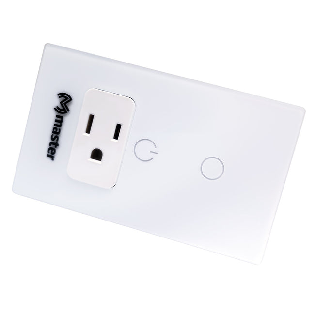 Proveedor:Master ElectronicosInterruptor y Contacto Inteligente de Pared WiFi | IOT-WLSWITCH1 Apagador con 1 enchufe Wifi Inteligente y 2 Botones Interruptores.