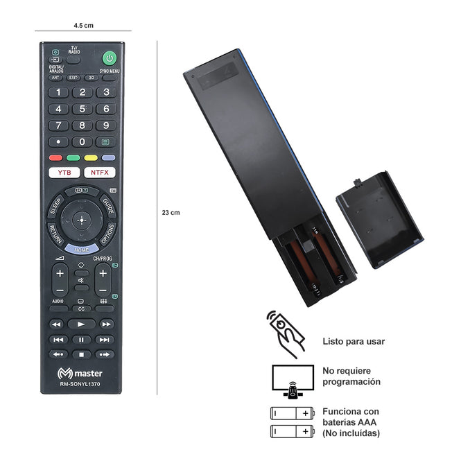 Proveedor:Master ElectronicosControl Remoto Compatible con Sony Smart TV | RM-SONYL1370 Control remoto para pantallas Smart TV SONY.