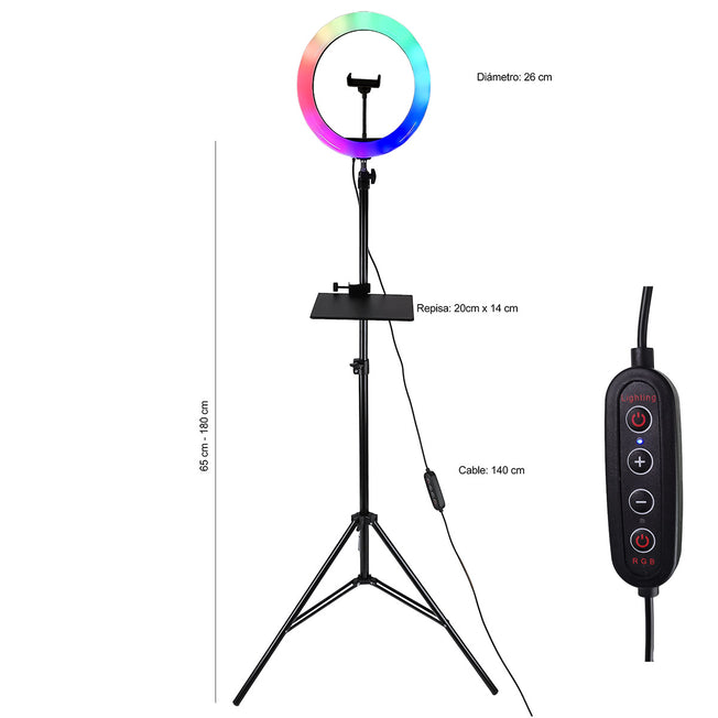 Proveedor:Master ElectronicosAro de luz RGB con soporte ajustable y repisa | ML-RING10-2.10 ¡Optimiza tu espacio creativo con nuestro Soporte Multifuncional de Entrada Universal con Repisa, la herramienta esencial para creadores de contenido digital como tú! Diseñado para potenciar tu productividad y elevar...