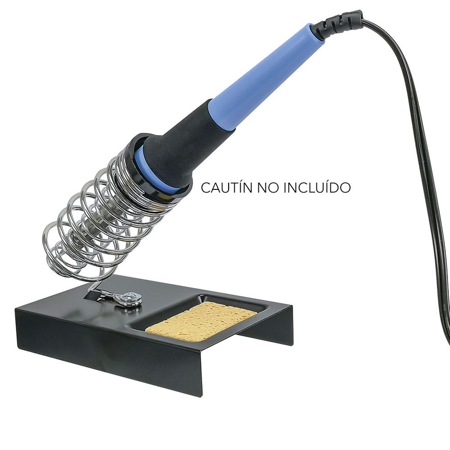 Esta elaborado con base de lámina de alta resistencia pintada en color negro, ideal para colocar cualquier cautín de lápiz y facilitar su correcto y cómodo agarre al utilizarlo.