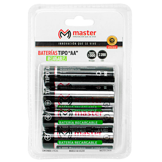 Te presentamos el PAQUETE DE BATERÍAS AA RECARGABLES de larga duración de Master Electrónicos.