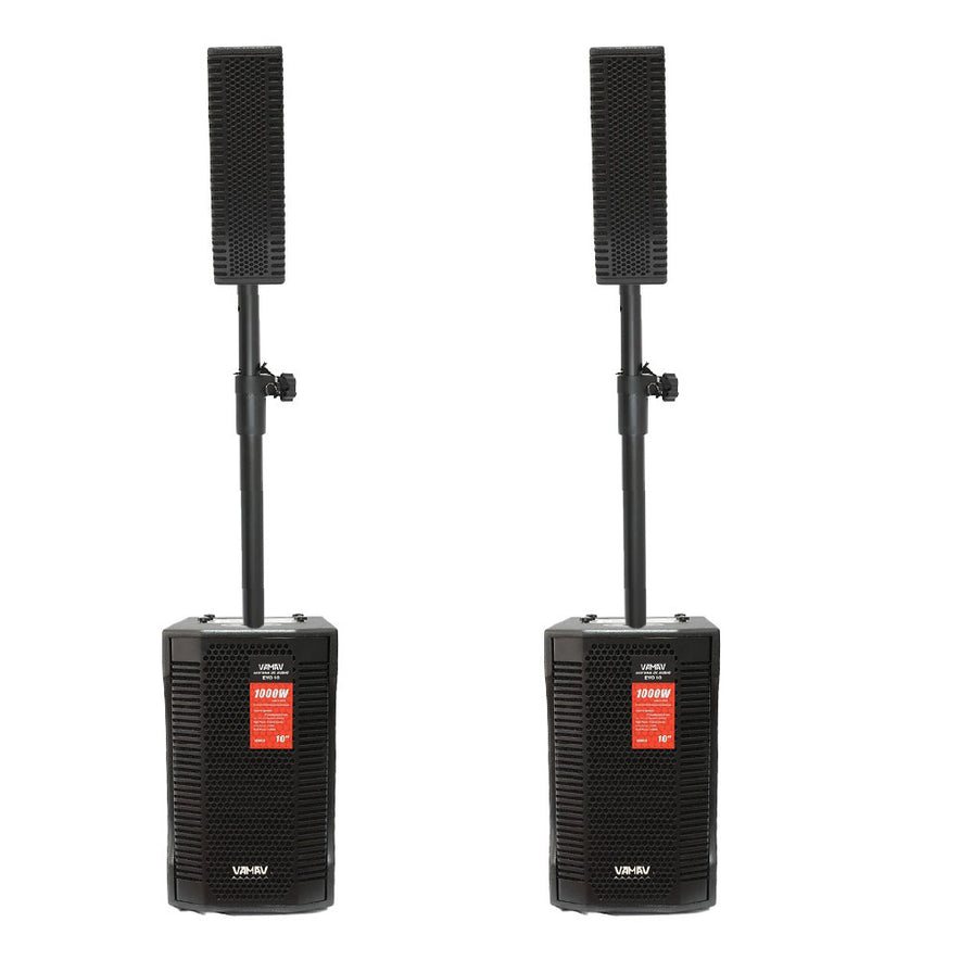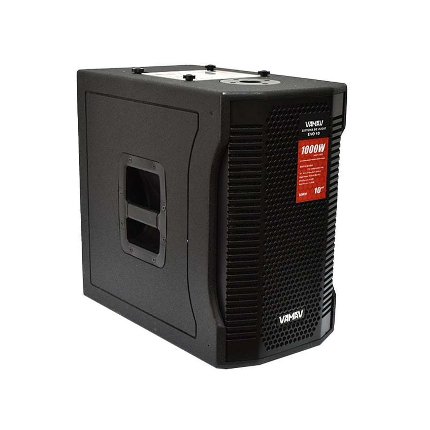 Este es un sistema de audio profesional de alto rendimiento que combina un altavoz principal de 10” con un satélite line array d, logrando una cobertura más amplia y un sonido claro en todo el lugar.